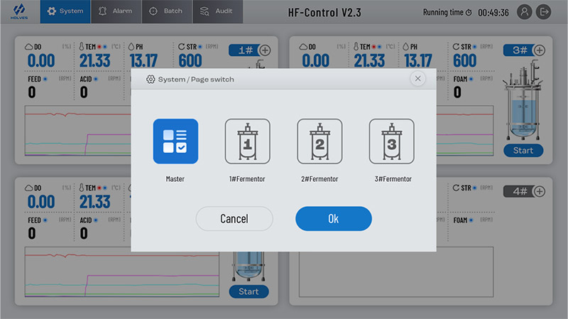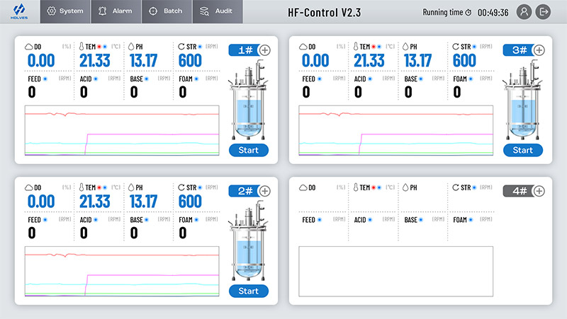 多聯(lián)罐的主控界面如下圖所示,所有罐體的主要參數(shù)數(shù)據(jù)都會在總界面顯示,方便監(jiān)控。