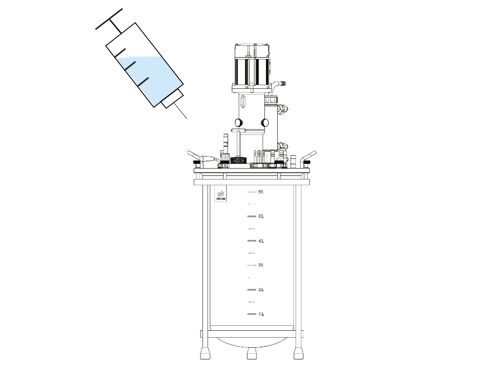 步驟3 準(zhǔn)備好無(wú)菌的注射器(提前在超凈臺(tái)吸入菌種液體),無(wú)菌操作將種子液安全注入發(fā)酵罐內(nèi)。