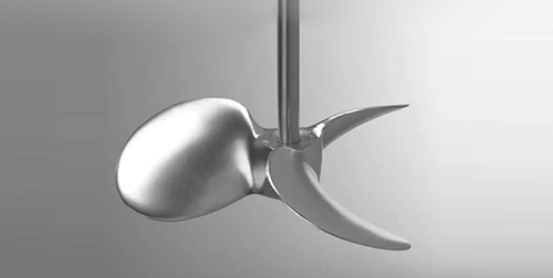 也被稱為推進(jìn)式攪拌槳,如圖所示。槳葉前面可為平面或凹面,但背面都是凹面。在旋轉(zhuǎn)時使液體向前方呈軸向流排出,使之在罐內(nèi)形成循環(huán),用于產(chǎn)生軸向流。這種槳葉循環(huán)速度較高,但是循環(huán)量較大,攪拌時產(chǎn)生的剪切力較小,但其和徑向流槳葉一樣,均是產(chǎn)生的單向流,因此混合效果較差,常用于低粘度流體,常用轉(zhuǎn)速范圍為100~500rpm。此類槳式及推進(jìn)式槳葉對氣體吸收過程基本上不適用,只有在少量易吸收的氣體或要求分散度不高時才能應(yīng)用。它主要用于液-液體系的混合、使溫度均一化、在低濃度固-液體系中防止淤漿沉降等或者某些特定的厭氧培養(yǎng)。 |