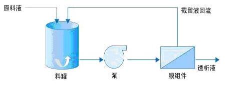 在過(guò)濾過(guò)程中料液通過(guò)泵的加壓,料液以一定流速沿著濾膜的表面流過(guò),大于膜截留分子量的物質(zhì)分子不透過(guò)膜流回料罐,小于膜截留分子量的物質(zhì)或分子透過(guò)膜,形成透析液。故膜系統(tǒng)都有兩個(gè)出口,一是回流液(濃縮液)出口,另一是透析液出口。在單位時(shí)間(Hr)單位膜面積(m2)透析液流出的量(L)稱(chēng)為膜通量(LMH),即過(guò)濾速度。影響膜通量的因素有:溫度、壓力、固含量(TDS)、離子濃度、黏度等。